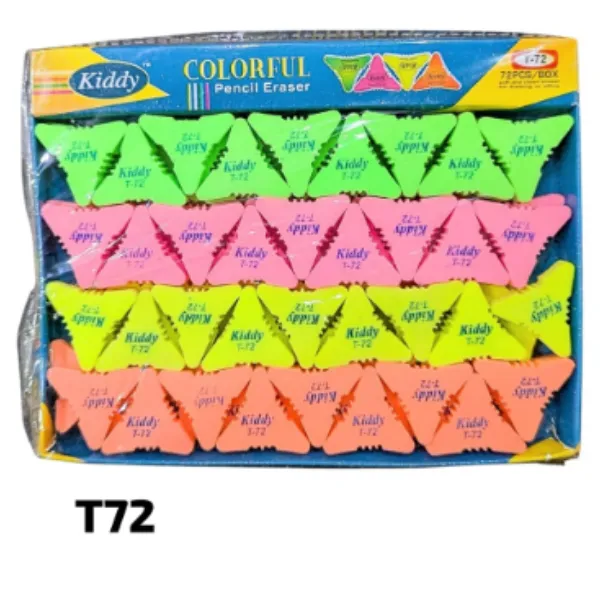 KIDDY Eraser T72 is a soft, dust-free white eraser that removes pencil marks smoothly and cleanly β ideal for school, home, and office use.